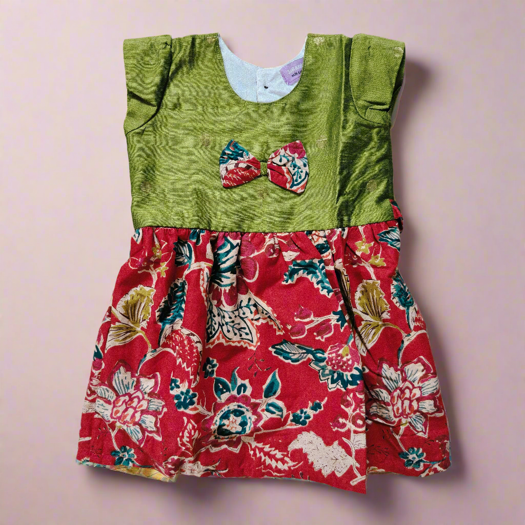 * Made with pure cotton fabric. Red base with multi color floelral print for the bottom and green with golden butta fabric on yoke