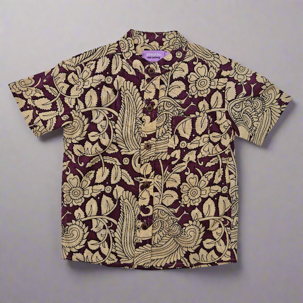 * Made from soft cotton fabric with dark violet base base and beige peacock kalamkari printÂ